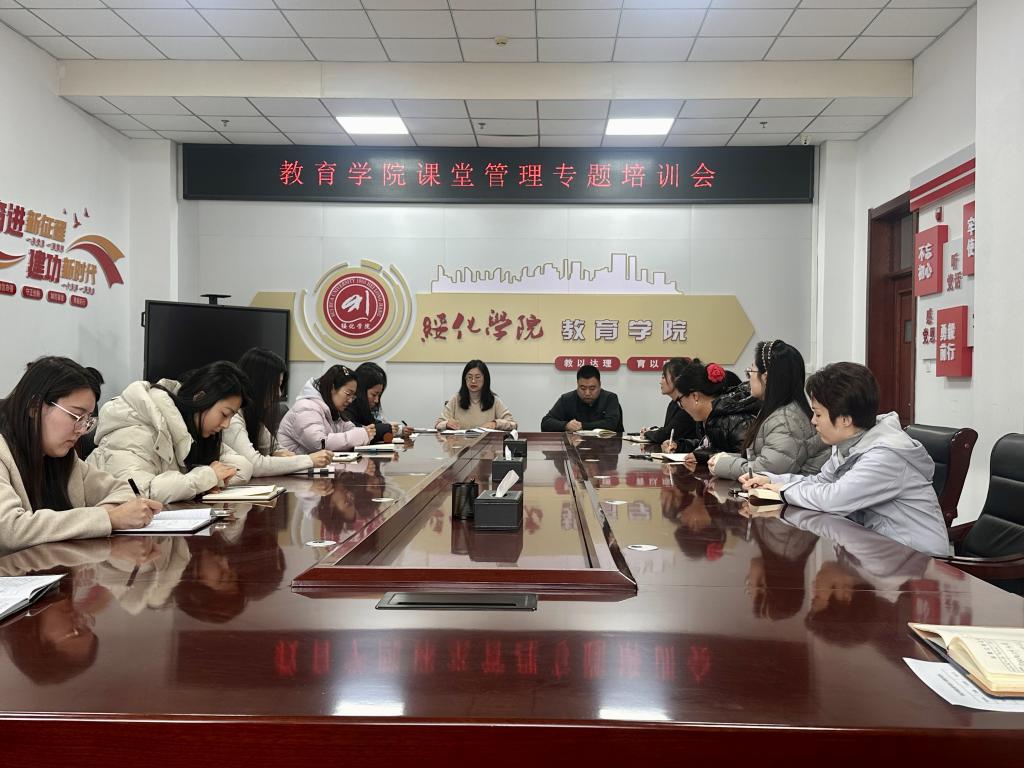 为落实学校《关于进一步加强课堂教学管理的通知》精神,加强学风建设,维护课堂教学秩序,强化对学生出勤、听课状态及课堂纪律管理,提高课堂教学质量,2025年11月12日下午,教育学院院长周姊毓组织学院全体教师开展教育学院课堂管理专题培训会。