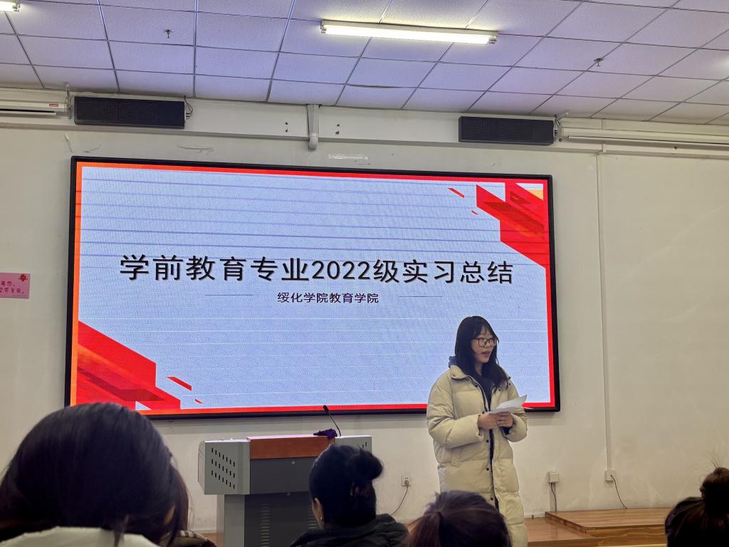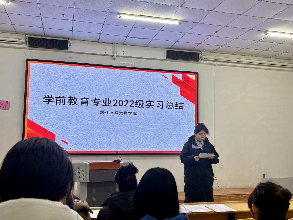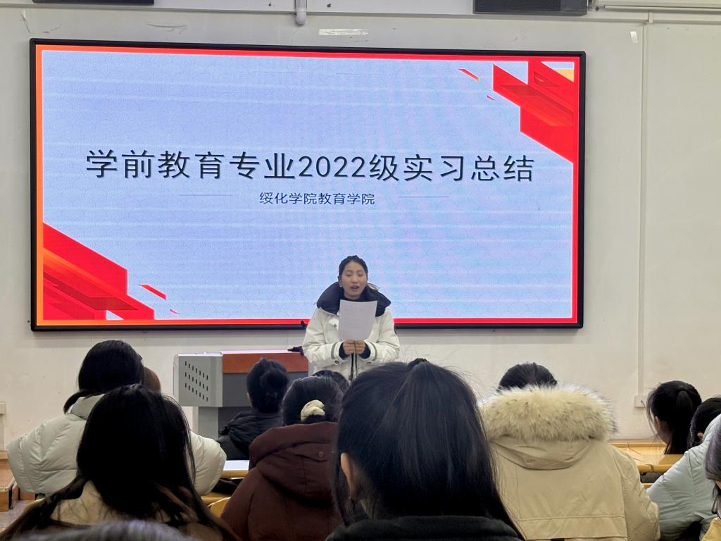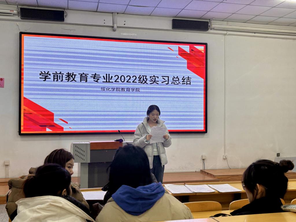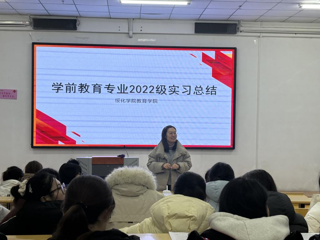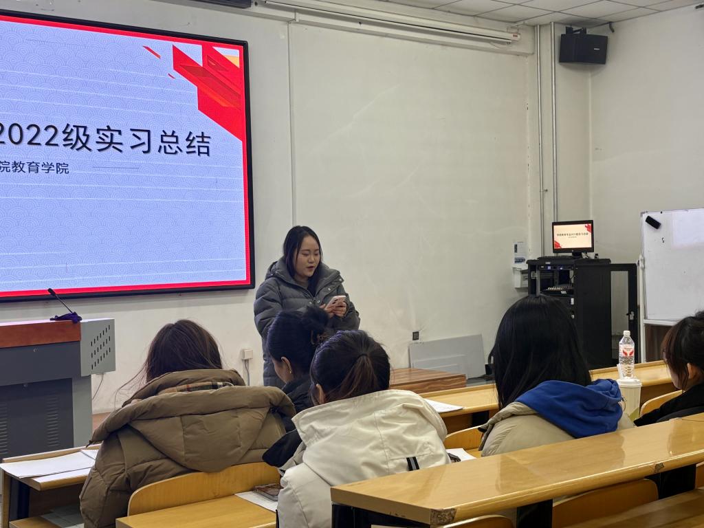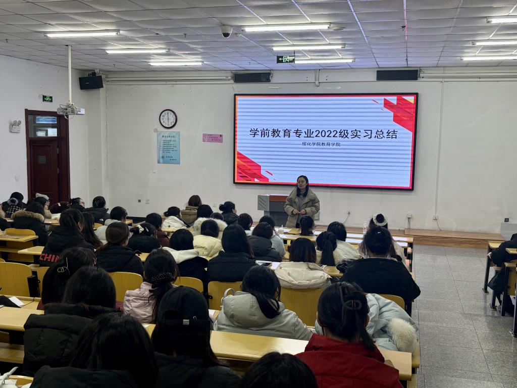 教育学院学前教育专业2022级本科生教育实习工作顺利落下帷幕。为全面总结实习成果,深化实践教学反思,学院安排实习指导教师深入各实习基地,观摩实习生公开课,并于2025年12月12日举办实习总结会。学前教育教研室主任、专业负责人刘妍主持本次活动。