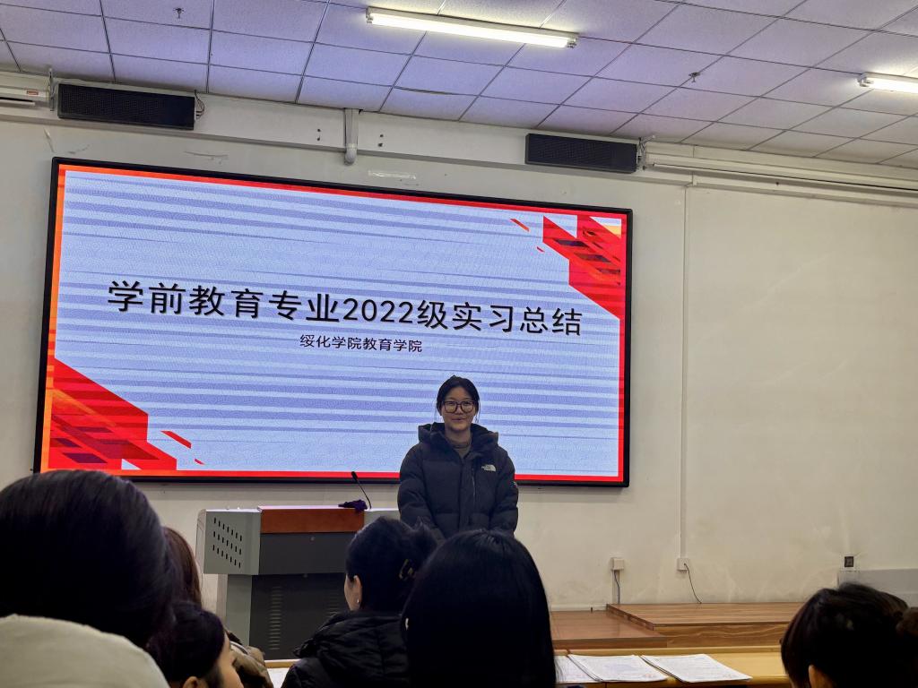 教育实习是学前教育专业人才培养的重要环节,是师范生从学生到教师角色转变的关键一步。通过学生集中汇报与教师入园观摩相结合的形式,不仅系统梳理了实习成果,促进实习生间的经验交流与共同提升,也强化与实践基地的纽带关系,为持续优化实践教学体系、提升人才培养质量积累了宝贵经验。