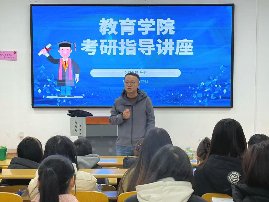 10月29日,教育学院于崇德楼101教室开展考研指导讲座,本次讲座由东北师范大学法学硕士、文都考研规划师张伟主讲,我院同学积极参加。