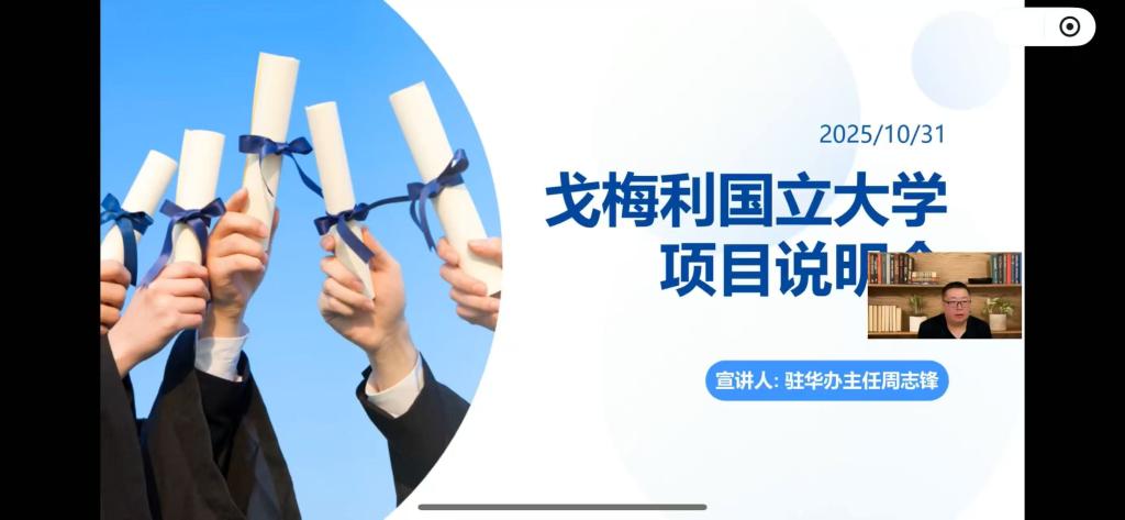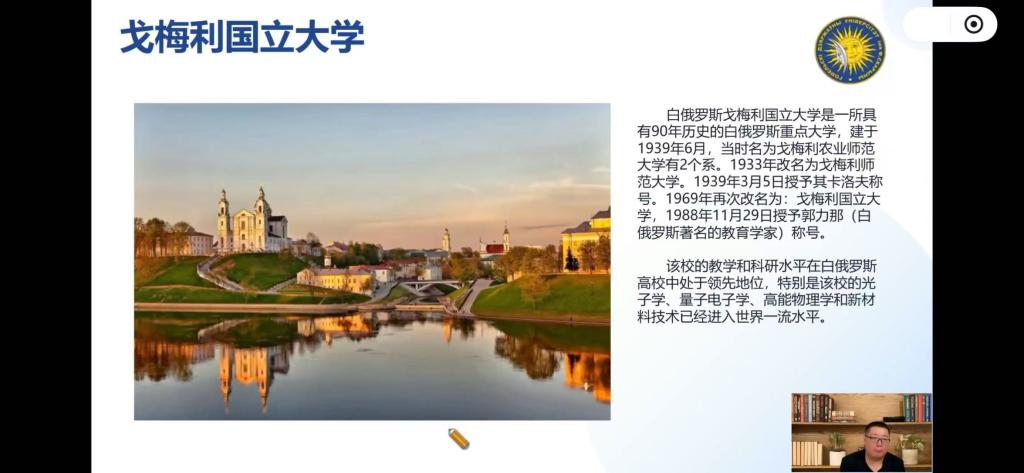 10月31日,戈梅利国立大学(0.5+3)本升硕升博项目说明会以线上直播形式开展,本次说明会由驻华办主任周志锋主讲,教育学院全体学子观看。