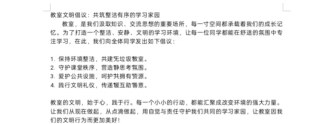 在此基础上,同学们以这些文明行为为核心,精心撰写文明校园倡议书。倡议既为不同场景下的文明实践明确了具体方向,也为系统性推进文明校园建设提供了兼具指导性与实用性的行动指南。