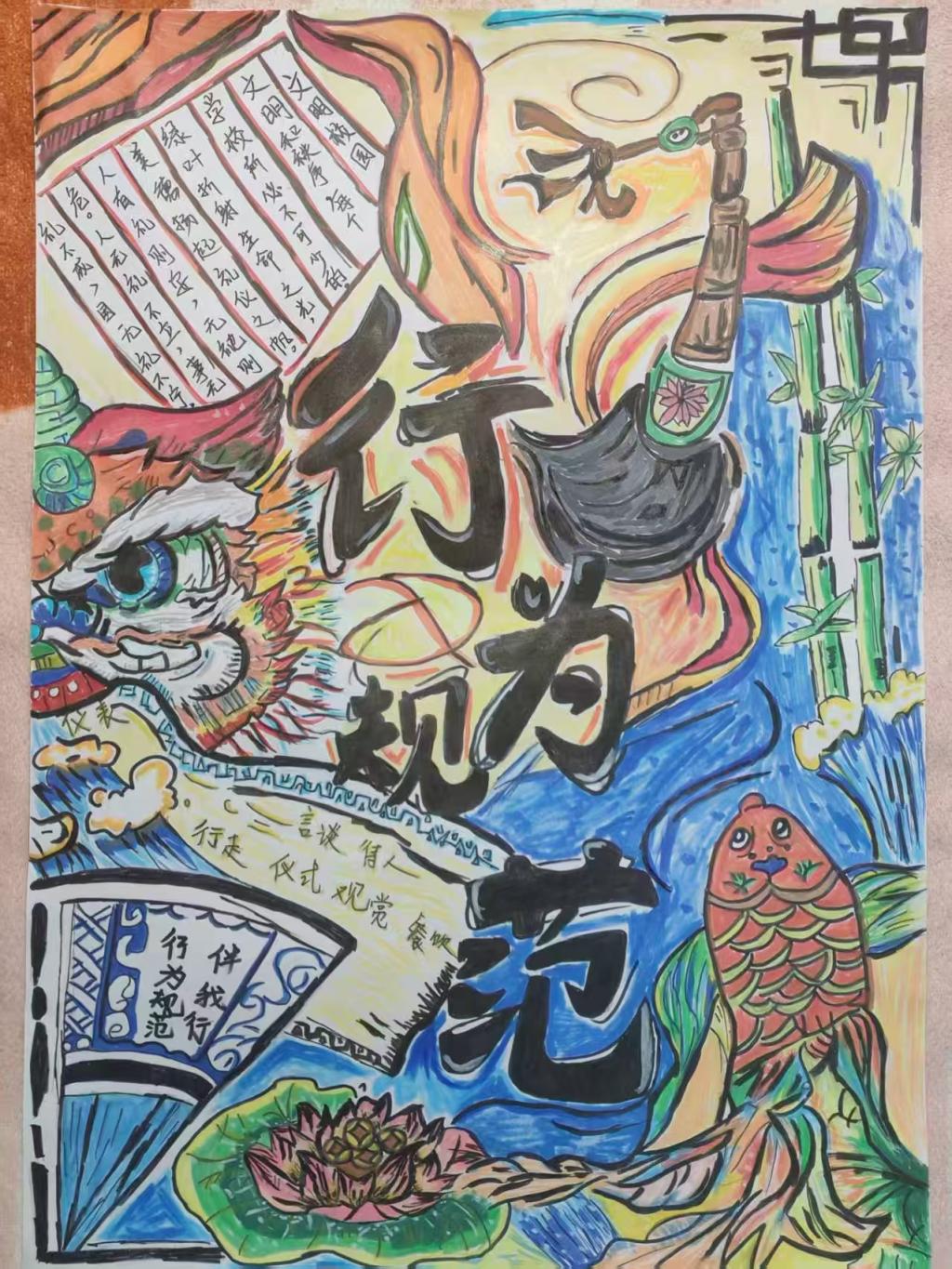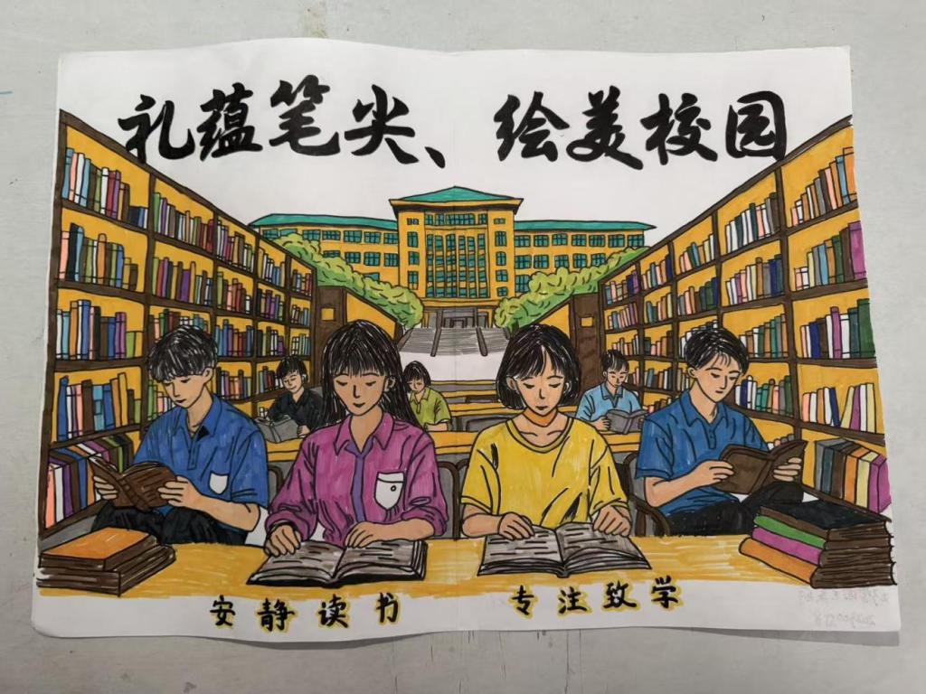 同学们以细腻水彩与生动漫画,从多元维度呈现校园文明的丰富意涵。他们聚焦课堂礼仪践行、公共空间维护、师生温情互动等日常场景,将文明细节具象化。作品以双手托举亭台绿树的意象,诠释人与自然的和谐共生;醒狮、锦鲤等文化符号被巧妙融入作品,深度解读文明行为规范的精神内核;图书馆内学子潜心阅读的画面被精心刻画,彰显校园书香里的文明气息。同学们把校园生活中诸多文明瞬间,转化为富有张力的艺术作品,让文明在色彩与线条的交织中,成为学院里极具生命力的文化印记。