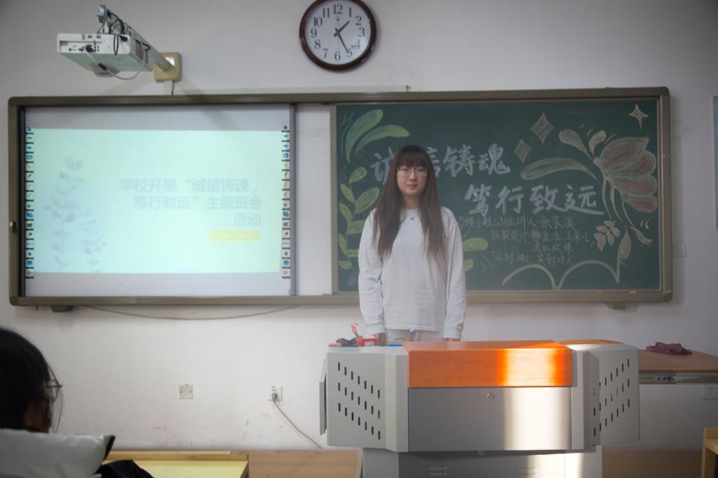 11月12日,教育学院于崇德楼各教室开展“诚信铸魂,笃行致远”主题班会。本次班会由各班班长主持,我院全体同学积极参加。