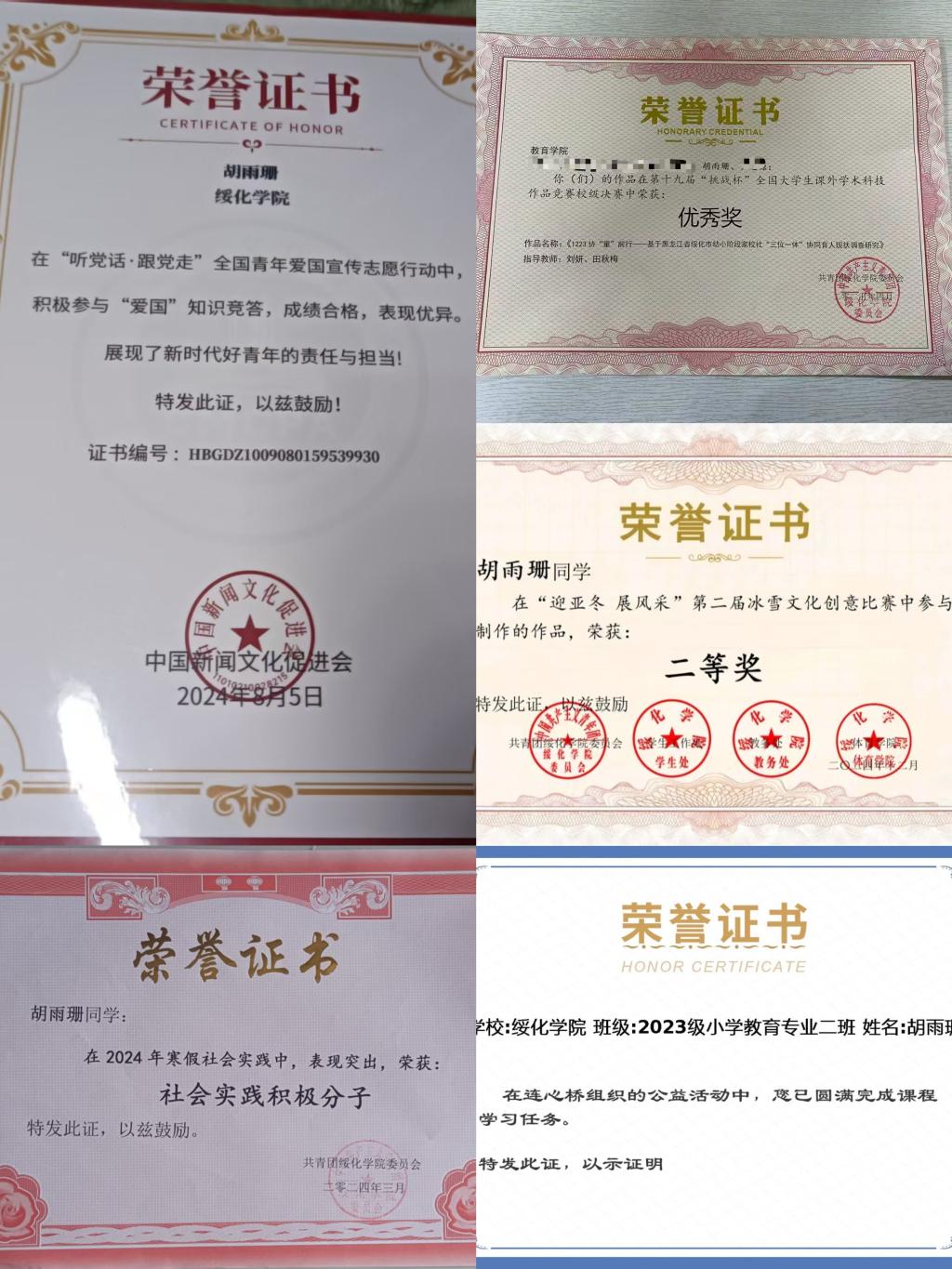 此外,胡雨珊始终保持“学干兼顾”的优良作风,在忙碌的学生工作之余,从未放松专业学习。她合理平衡时间分配,勤奋刻苦、善思善学,学业成绩始终名列前茅,用实际行动证明“学生干部既能扛得起责任,也能拿得出成绩”。同时,她积极参与志愿服务、社会实践等活动,将理论知识与实践相结合,在奉献社会中锤炼品格、增长才干。