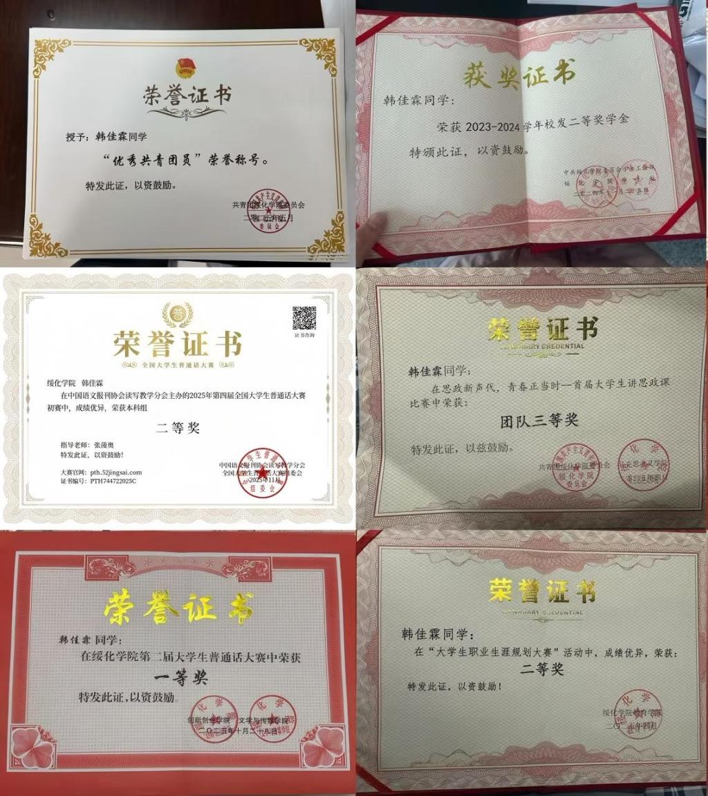 在学习上,韩佳霖始终秉持严谨务实的态度,以系统掌握小学教育专业核心知识为目标,深耕学科基础与专业主干课程,凭借极强的自律意识与清晰的学习规划,构建起扎实完备的专业知识体系,连续两年斩获各类奖学金,用优异成绩生动诠释了“勤学善思”的真谛。