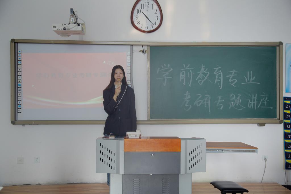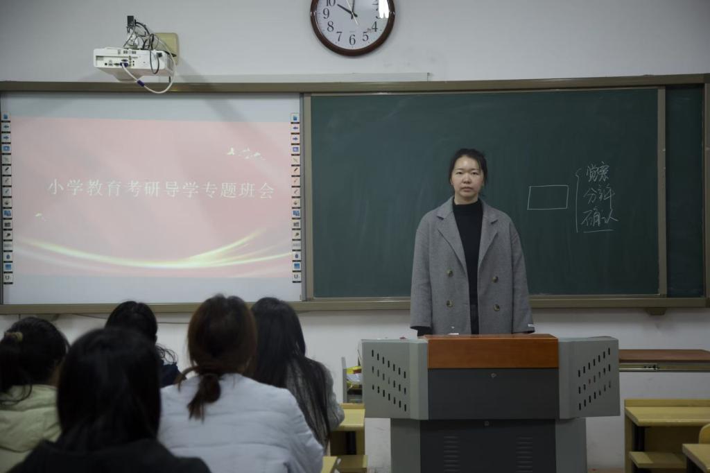 学前教育专业指导中,主讲教师先拆解近三年本专业考研数据,直观呈现报考趋势与竞争特点;再介绍学院考研课程开设安排,明确备考核心内容;最后通过集体交流互动,引导学子结合自身梳理考研方向,助力大家在备考起步阶段理清节奏、找准重点。