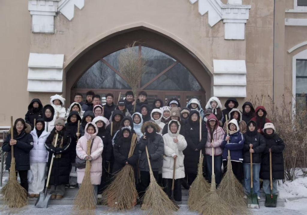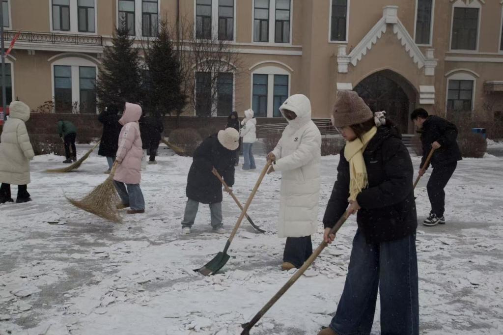 为保障校园道路畅通与师生出行安全,学院组织全体学生党员及主要学生干部,开展“积雪清扫,护航出行”的志愿服务活动。大家携带铁锹、扫帚等工具,躬身挥铲破除积冰,俯身扫雪开辟通道,以实干姿态直面严寒、奋勇当先。活动中,众人各司其职、默契配合,全面清除路面积雪与冰层,为师生构筑起安全通畅的“安心之路”。