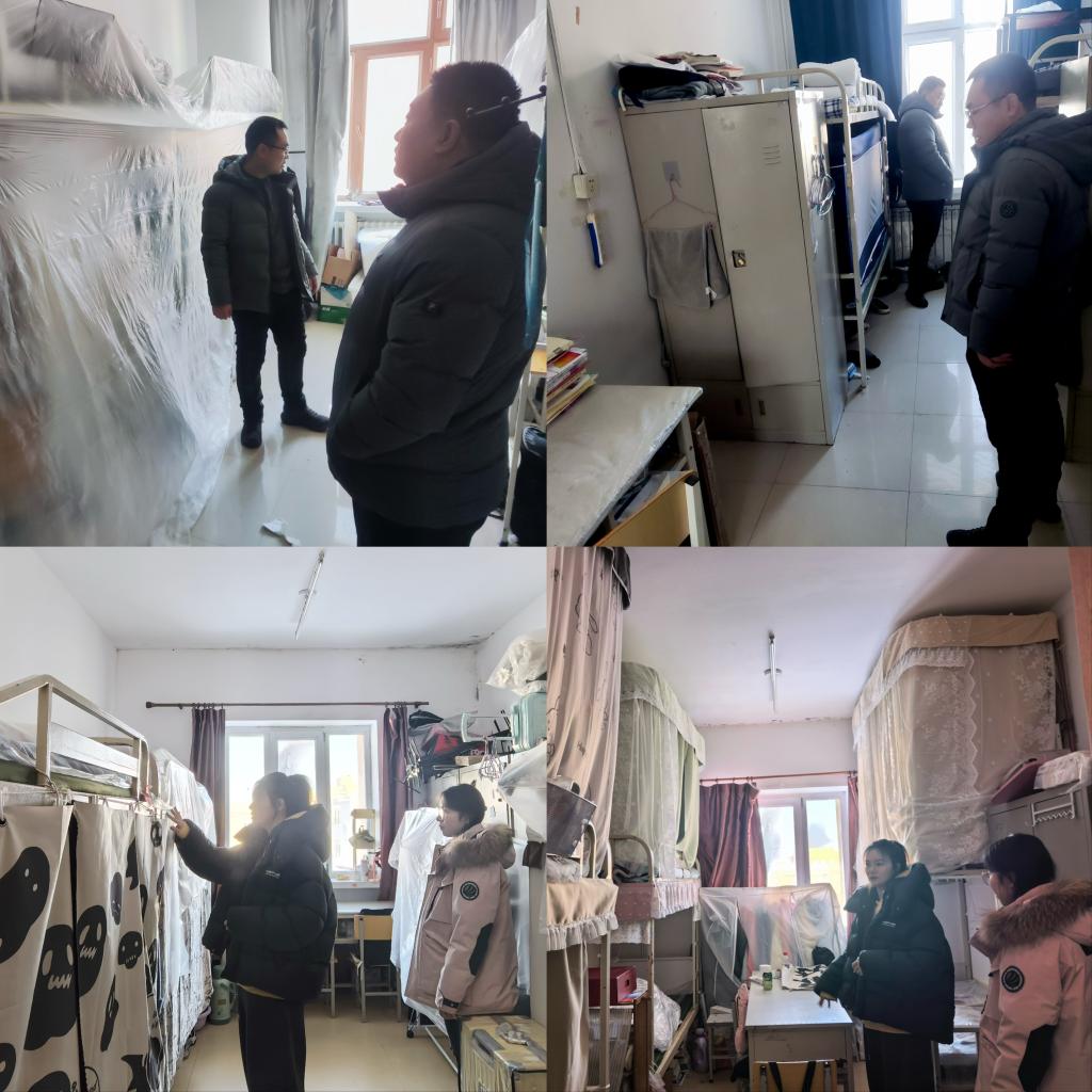 12月29日,教育学院党总支书记曹广志、党总支副书记黄静2025级辅导员李恒、2023级辅导员张奥,深入学生宿舍开展假期前宿舍安全检查。