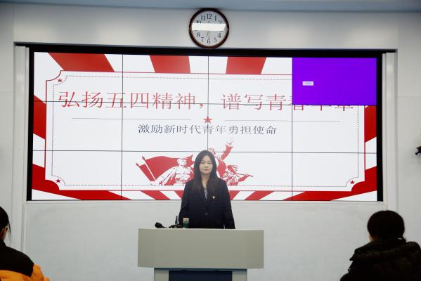 团课中,马文静以“弘扬五四精神,争做时代青年”为核心展开讲解。她沿历史时间轴回溯五四运动百年历程,结合新时代青年使命,深入解读五四精神的时代内涵,并着重强调,当代青年应赓续“爱国、进步、民主、科学”的精神血脉,将个人理想融入民族复兴伟业,做有理想、敢担当、能吃苦、肯奋斗的新时代好青年。