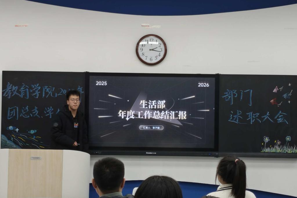 本次述职大会既是对过去一年工作的集中检视,也为各部门提供了交流互鉴的平台,进一步明确了职责定位与协作机制,激发了学生干部的工作热情与创新动力。教育学院将以此次会议为新起点,持续提升服务效能,团结引领广大同学共同成长,为学院高质量发展贡献青春力量