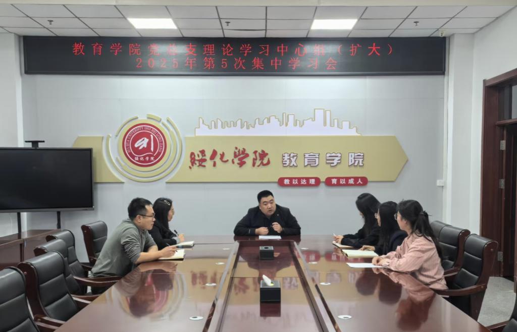 9月24日,教育学院于崇德楼320会议室召开党总支理论学习中心组(扩大)2025年第5次集中学习会。教育学院党总支书记曹广志主持会议并讲话。党总支理论学习中心组成员黄静、刘妍、韩影、李恒参加学习,教育学院院长周姊毓、第二学生党支部书记张蔆奥列席会议。