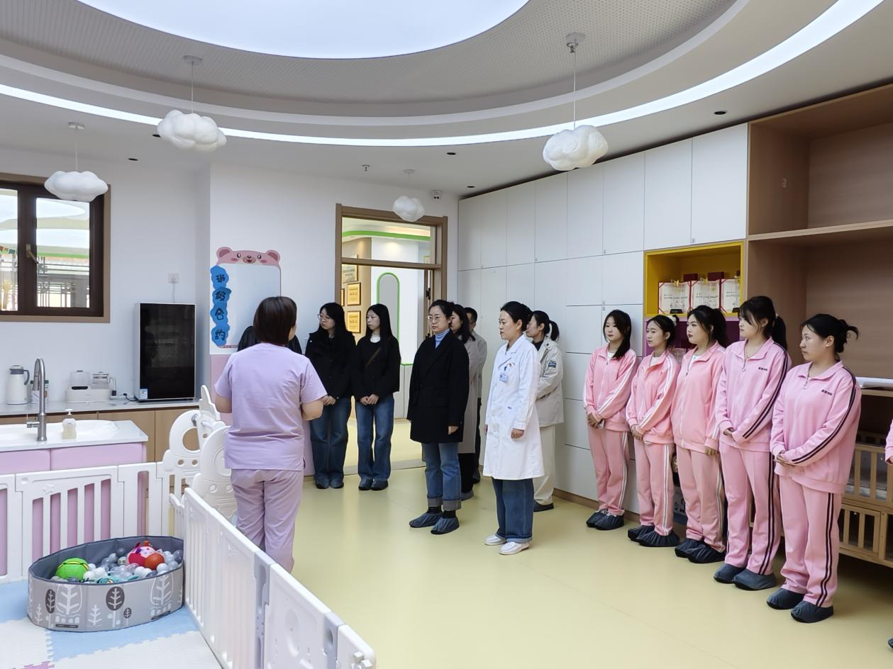 在绥化市妇幼保健院副院长、0-3岁婴幼儿托育综合服务中心负责人李丹丹陪同下,周姊毓一行实地参观了院内相关功能区域与教学实践设施,详细了解婴幼儿早期发展、健康照护、儿童保健等服务内容及岗位人才需求,近距离感受妇幼保健领域与学前教育专业融合发展的实践场景。