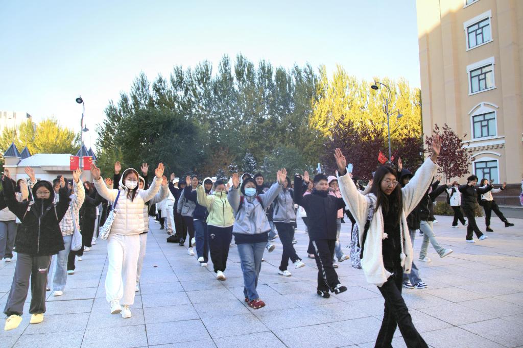 10月16日,教育学院于特殊教育学院广场组织2025级学生开展秋季学期早操活动,以此全面提升学生身体素质,彰显青春活力与奋进姿态,让学生们以活力满满的姿态迎接每个清晨。
