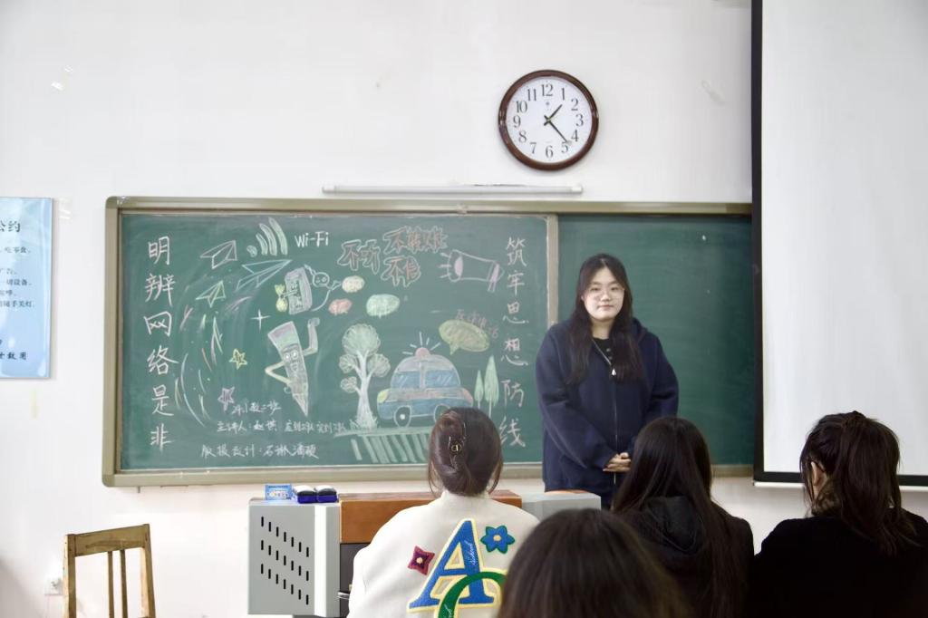 4月22日,教育学院于崇德楼教室开展“明辨网络是非,筑牢思想防线”主题班会,班会由各班班长主持,我院全体学生积极参加