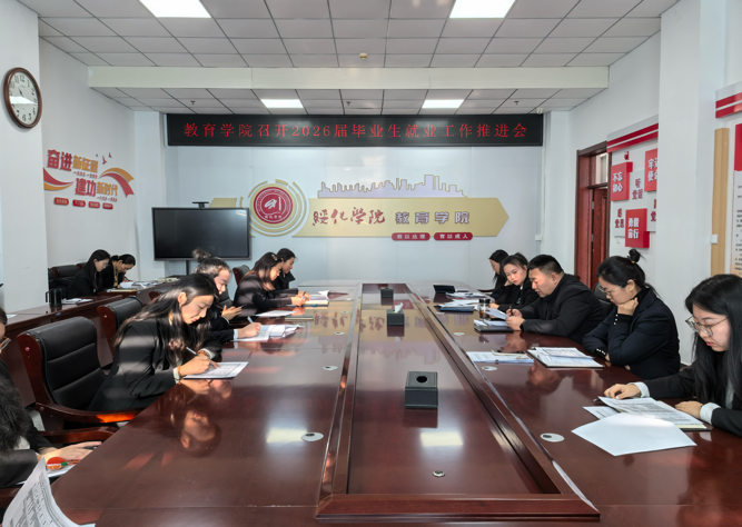1月4日,教育学院于崇德楼320会议室召开2026届毕业生就业工作推进会。本次会议由教育学院党总支书记曹广志主持,院长周姊毓、党总支副书记黄静及学院全体教师参会。