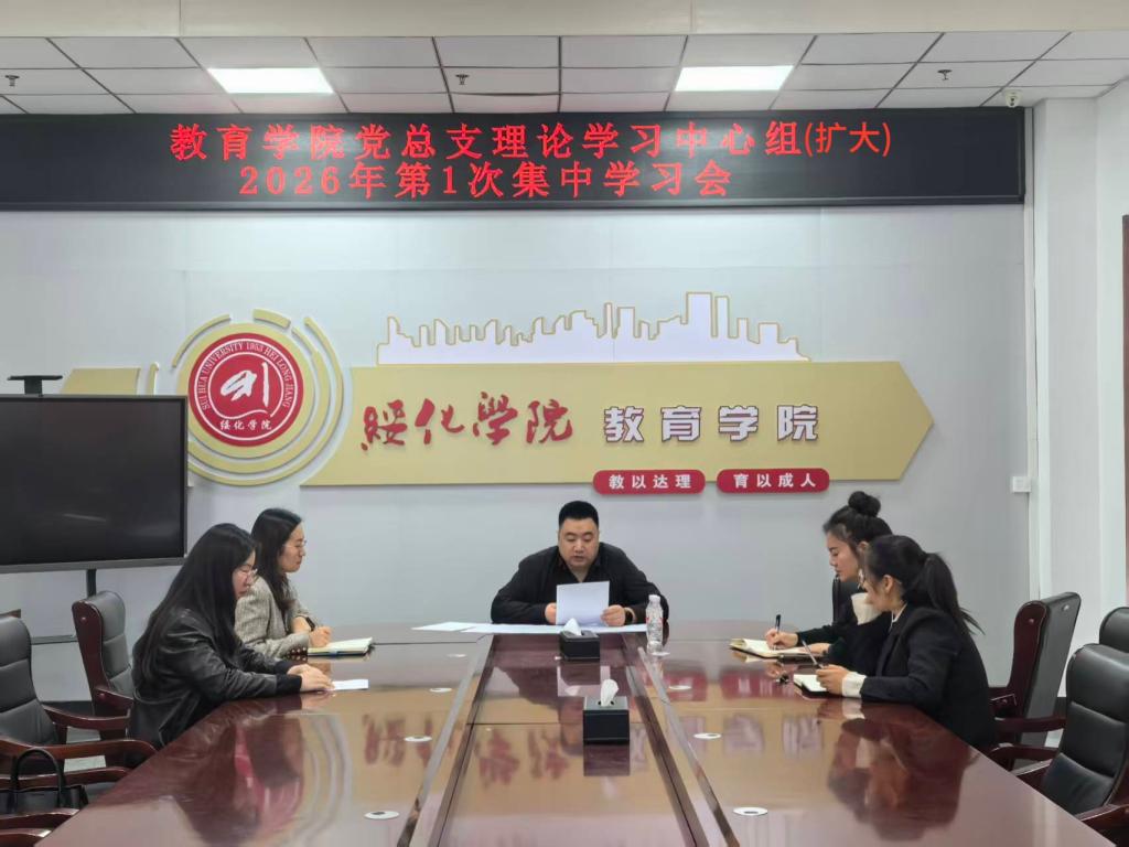 3月31日,教育学院在崇德楼320会议室召开党总支理论学习中心组(扩大)2026年第1次集中学习会。教育学院党总支书记曹广志主持会议并讲话,党总支理论学习中心组成员黄静、刘妍、韩影、李恒参加学习,第二学生党支部书记张蔆奥列席会议。
