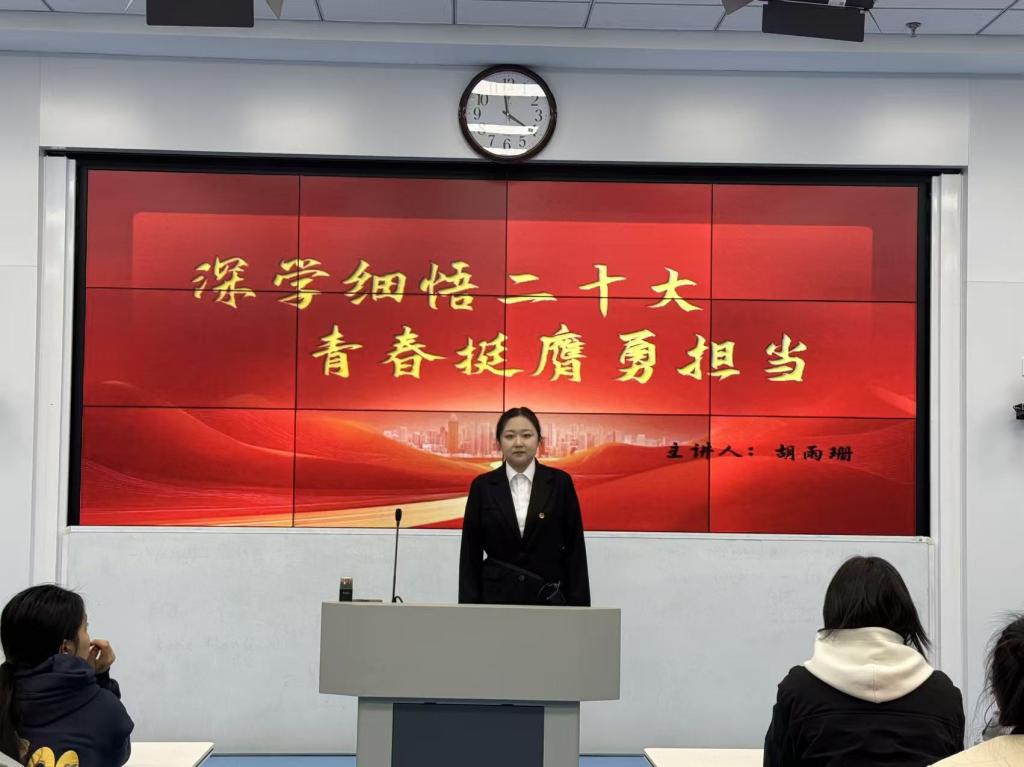 团课伊始,胡雨珊首先明确了本次学习的核心目标与课堂要求,希望同学们将学习党的二十大精神作为当前思想武装的重中之重,不仅要做到“原原本本学”,更要结合教育专业特色“带着使命悟”。她指出,作为未来的教育工作者,入团积极分子应深刻理解“青年强,则国家强”的时代内涵,在学思践悟中筑牢信仰之基。