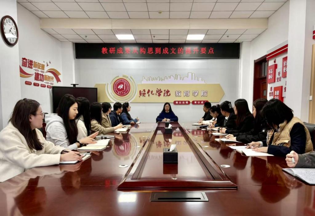 由教务处主办、教育学院承办的专题讲座“教研成果从构思到成文的提升要点”在崇德楼320会议室举行。本次讲座由教育学院院长周姊毓教授主讲。教育学院师生参与讲座。